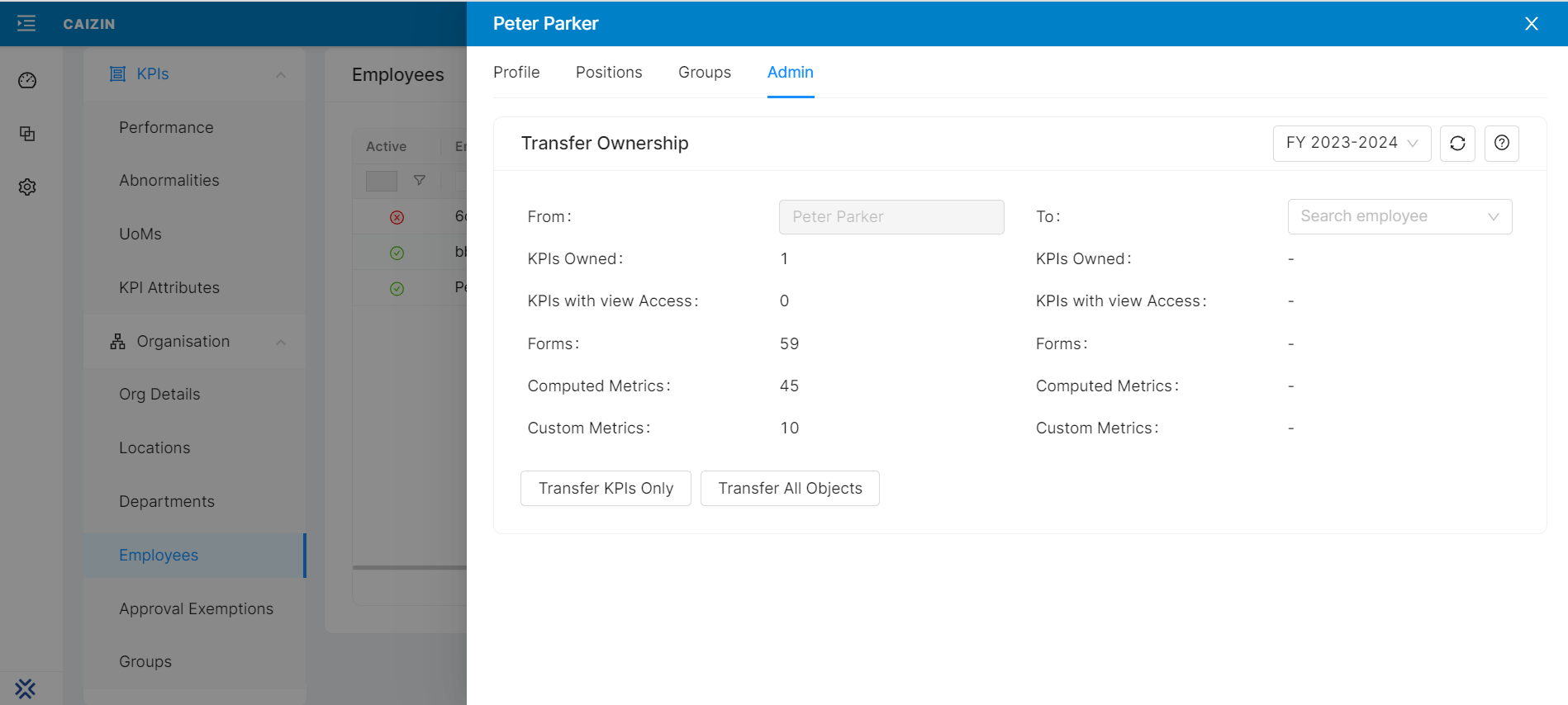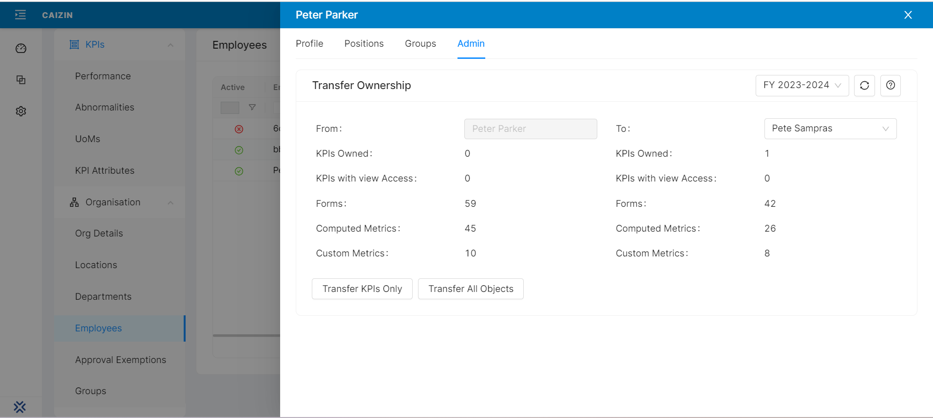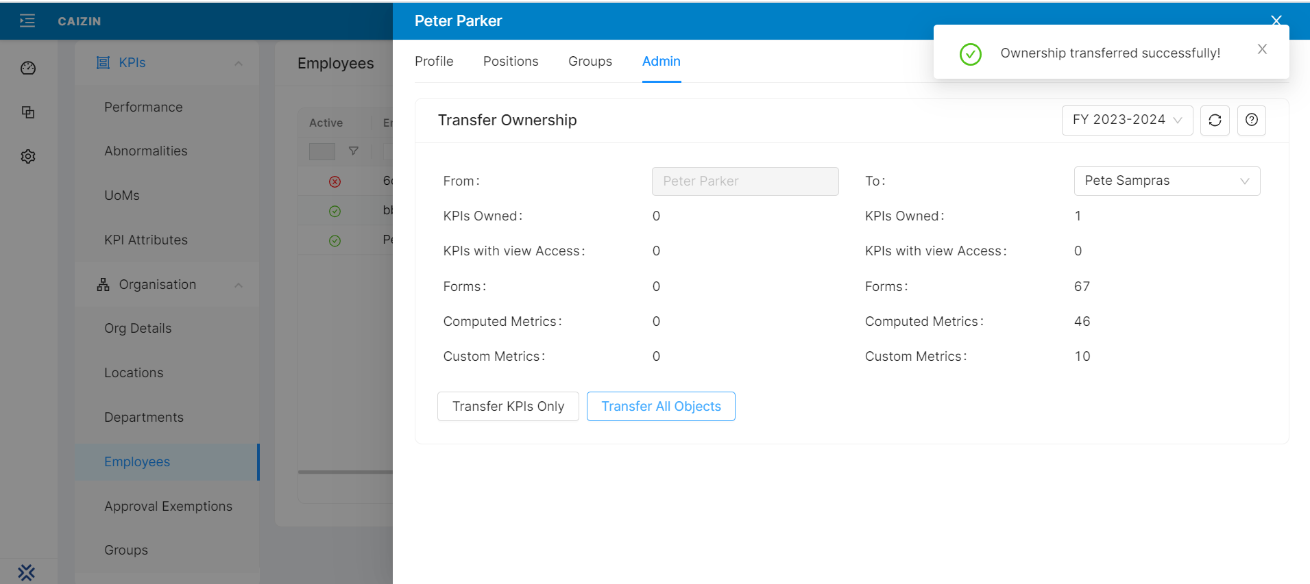Transfer KPIs only - This will only transfer the KPIs ‘From user’ to ‘To user’