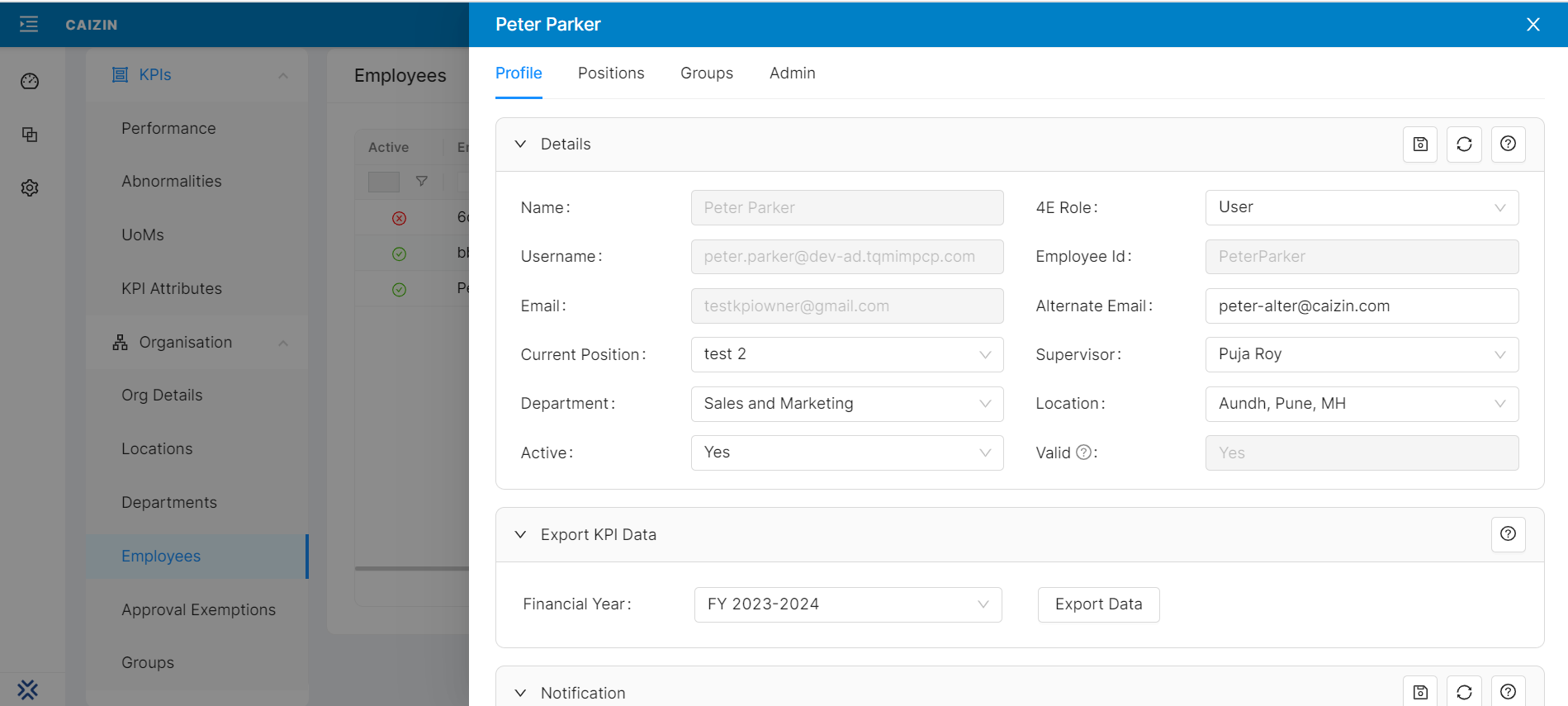 Select the Admin tab, here the ownership of 4E objects (KPIs, Forms etc) for the current FY is displayed.